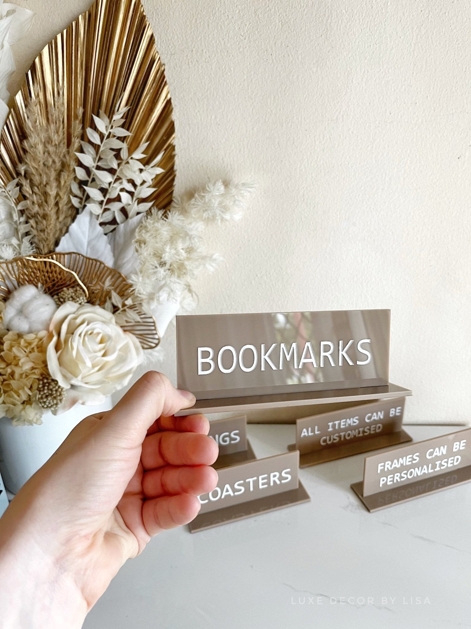 (Similar amount of writing to pictured only, maximum a few words) Please mention your writing needed like this. 1- Bookmarks 2- Coasters etc