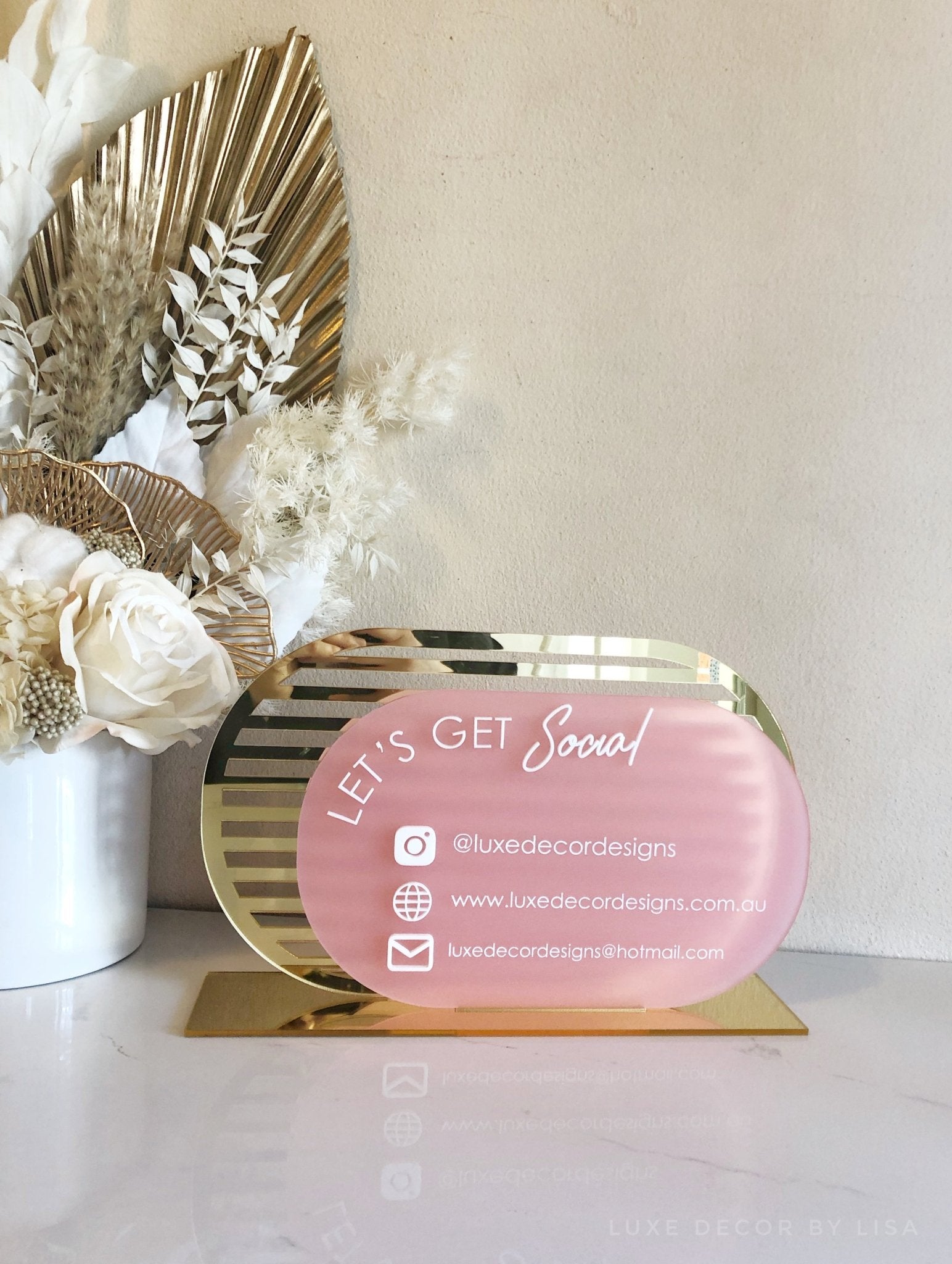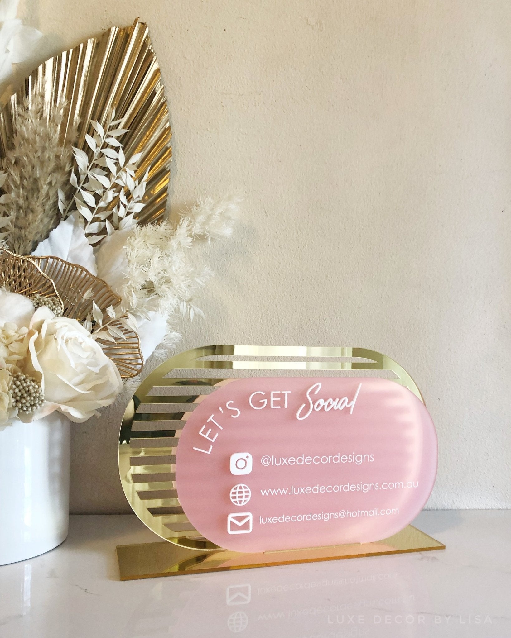 This sign can include your Instagram handle, your website and your email address. Please mention this in the design details section. Or you can change one of them to your Facebook, phone number etc.