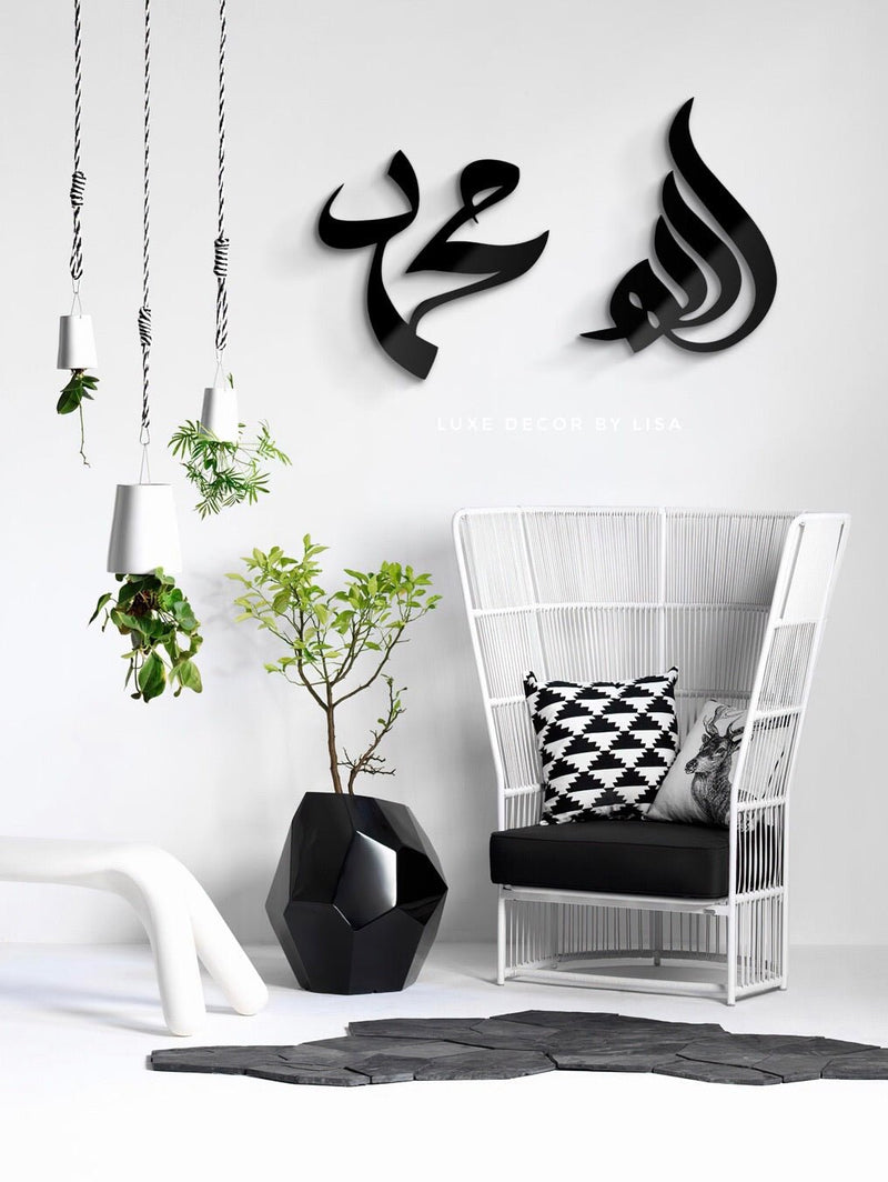 Muhammad on the left is 50cm x 50cm and Allah on the right is 39cm wide x 50cm tall