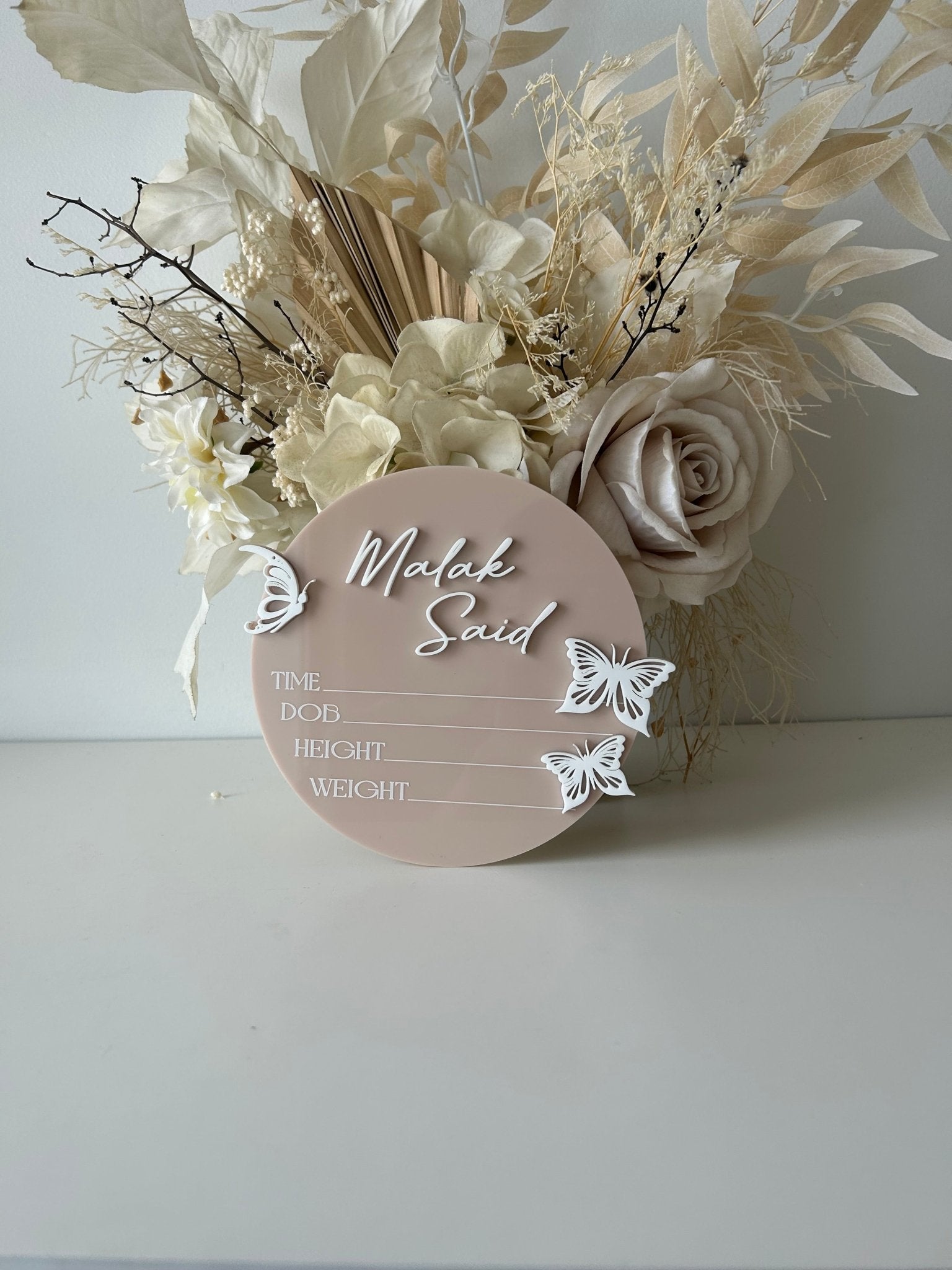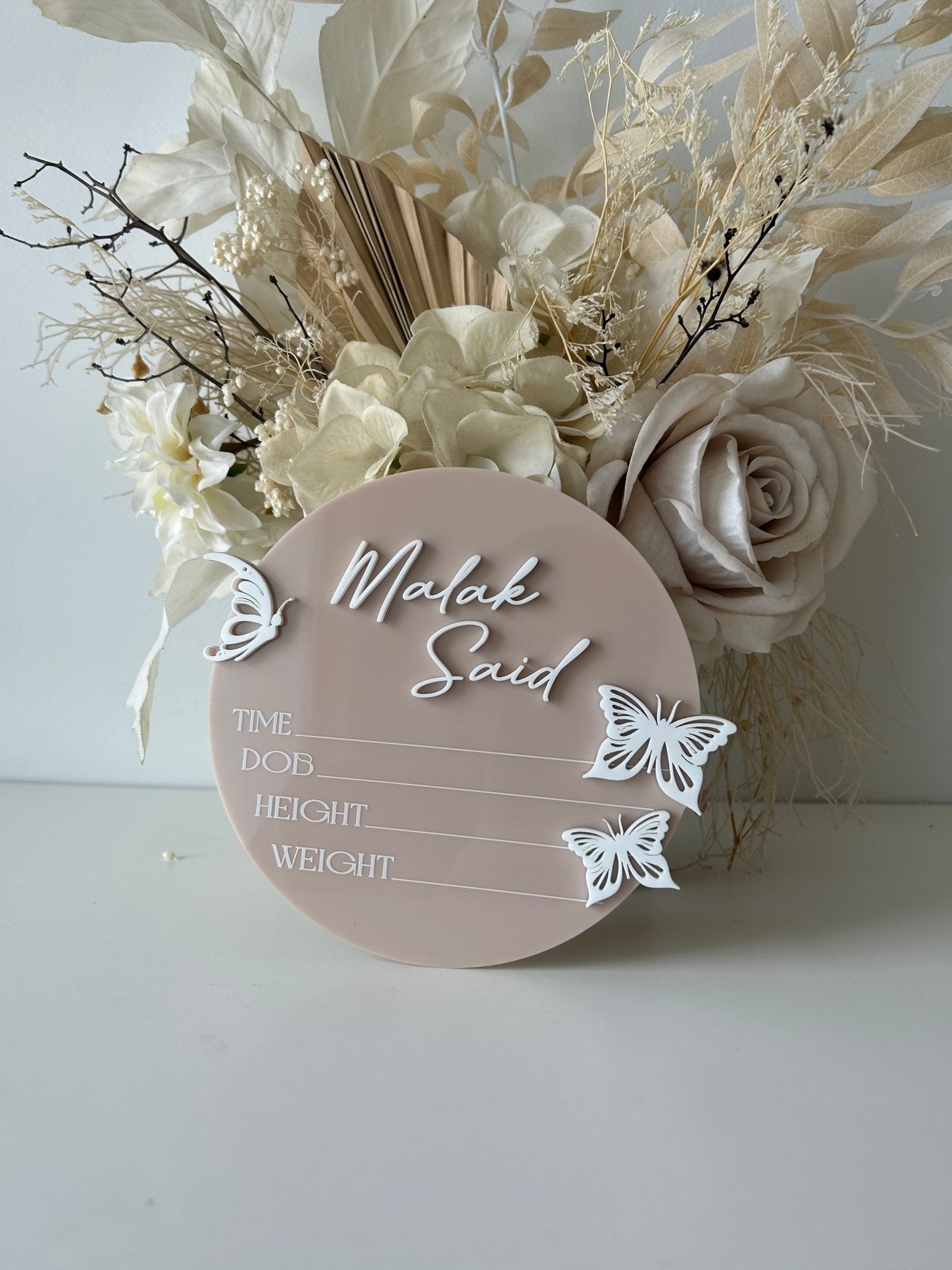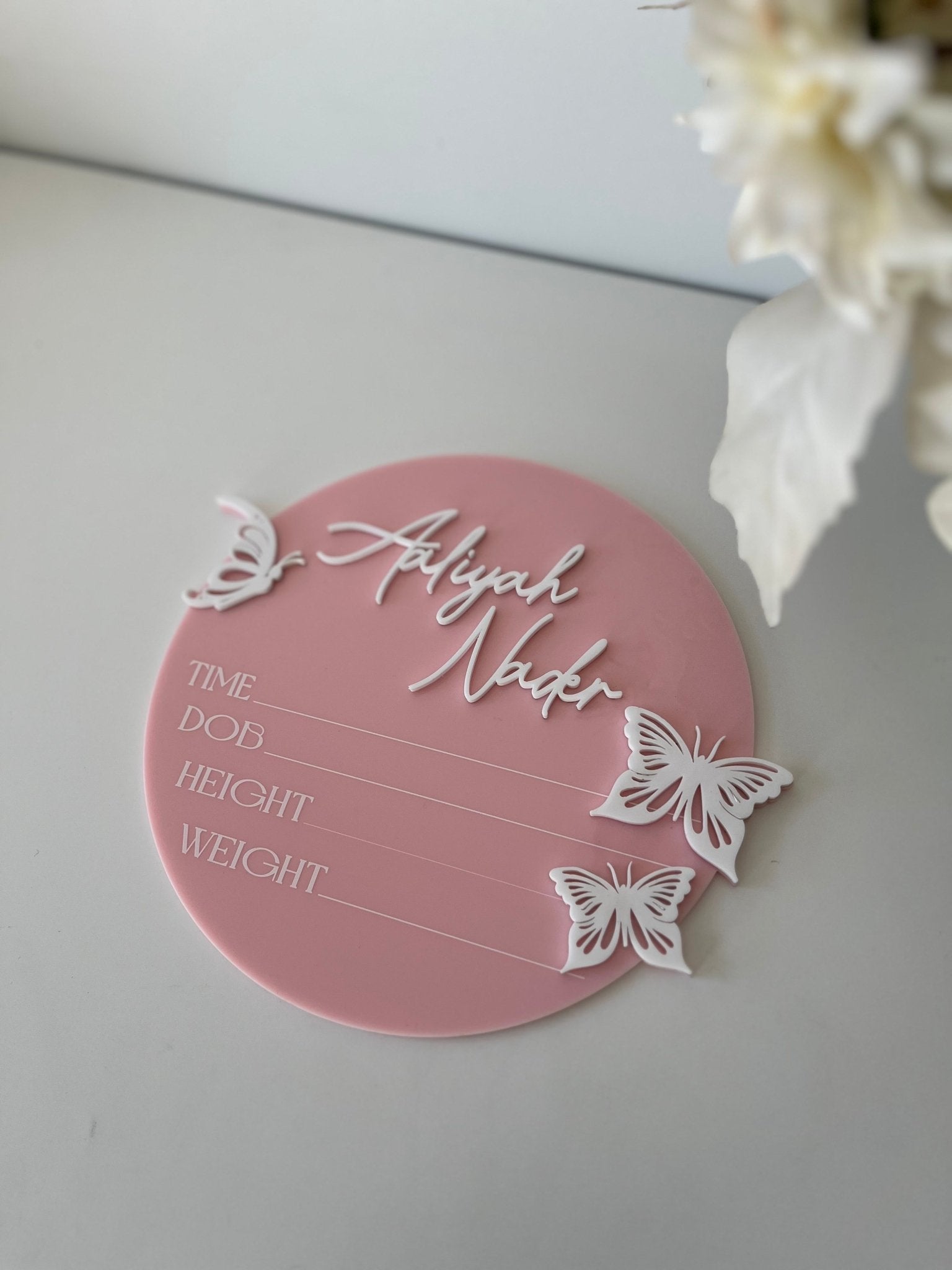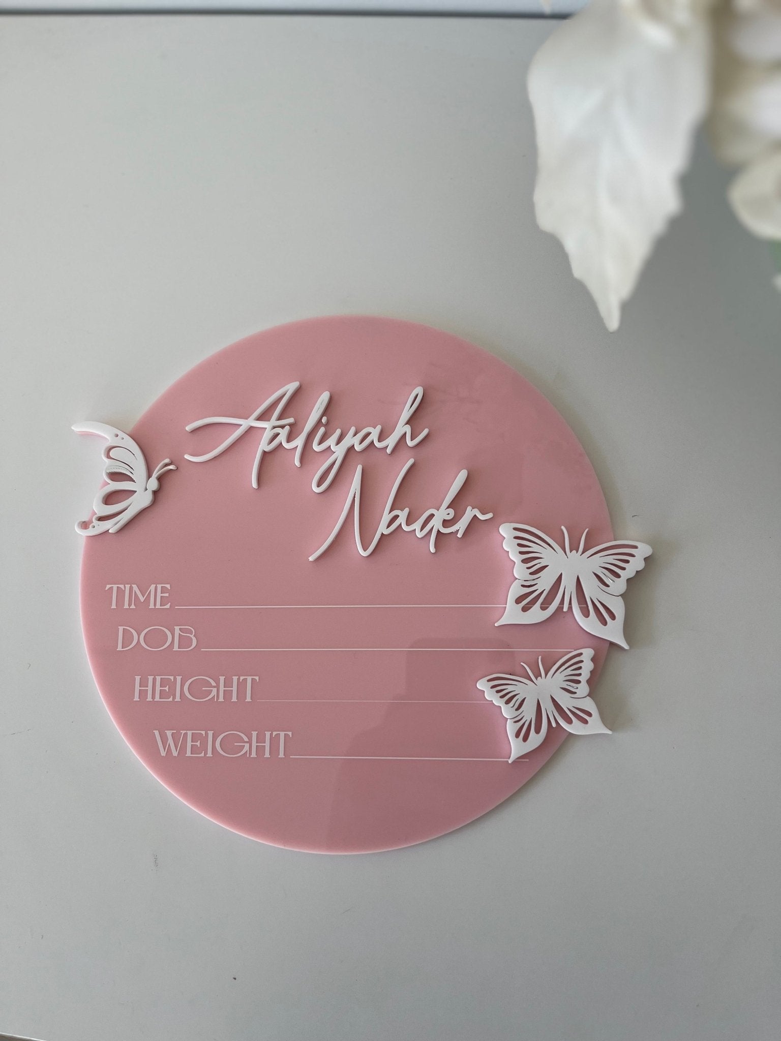 3D Butterfly Birth Announcement Plaque - Circle