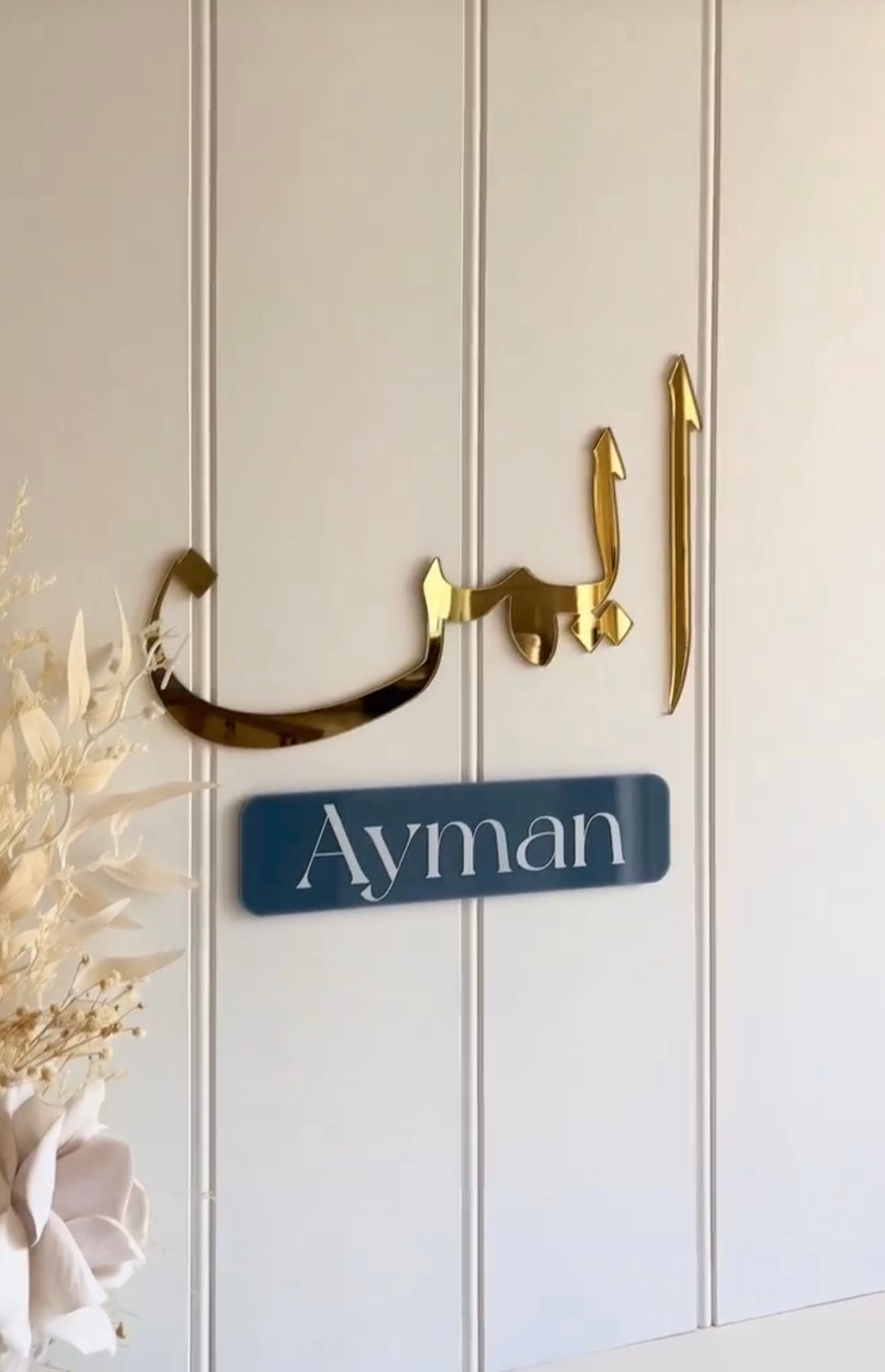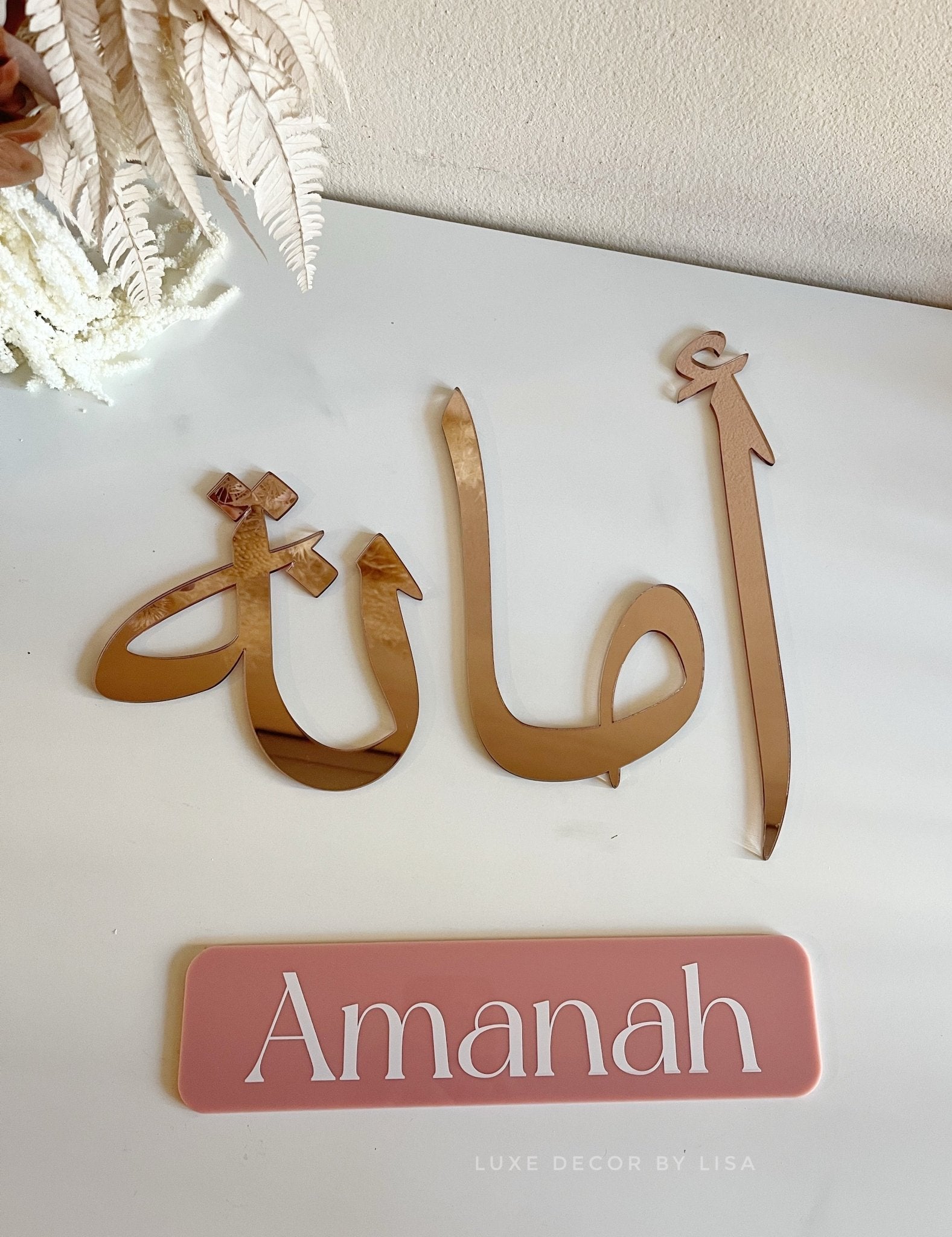 Please type the name in Arabic in the design details section, the name in English and mention your colours needed.