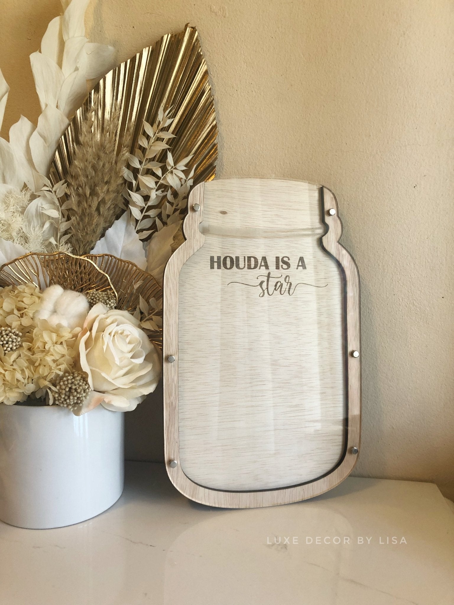 Made from your choice of colour acrylic or wood and a clear acrylic front