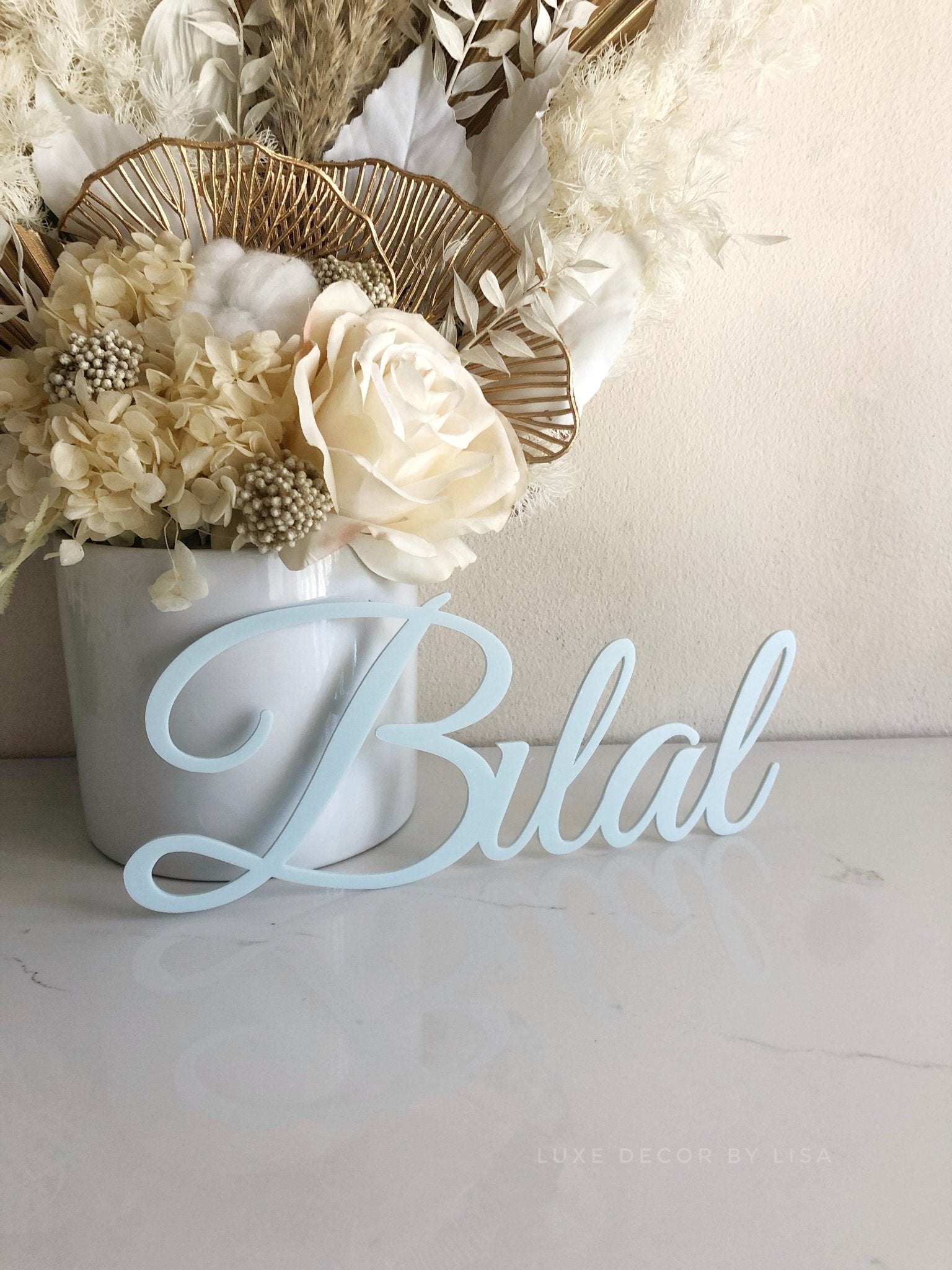 Please mention the name/word needed and the acrylic colour in the “design details” section