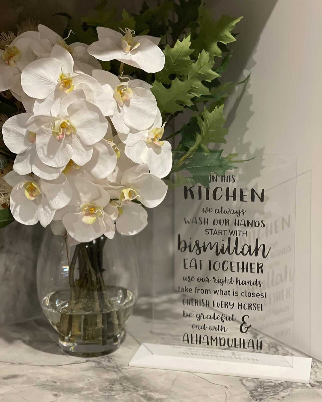 Black writing UV printed onto clear acrylic with a white base