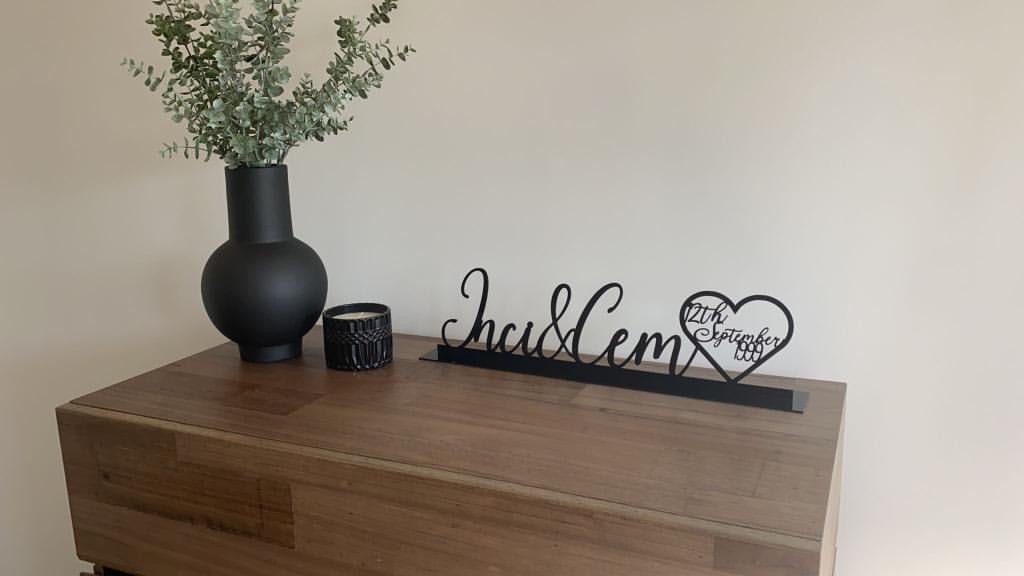 15cm tall or the longest this will be made is 65cm wide. If the length exceeds 65cm wide for the 2 names (if the names are longer it may) then the height will be shortened to fit it. If you’d like to know the exact dimensions your names comes to, please message me beforehand.
