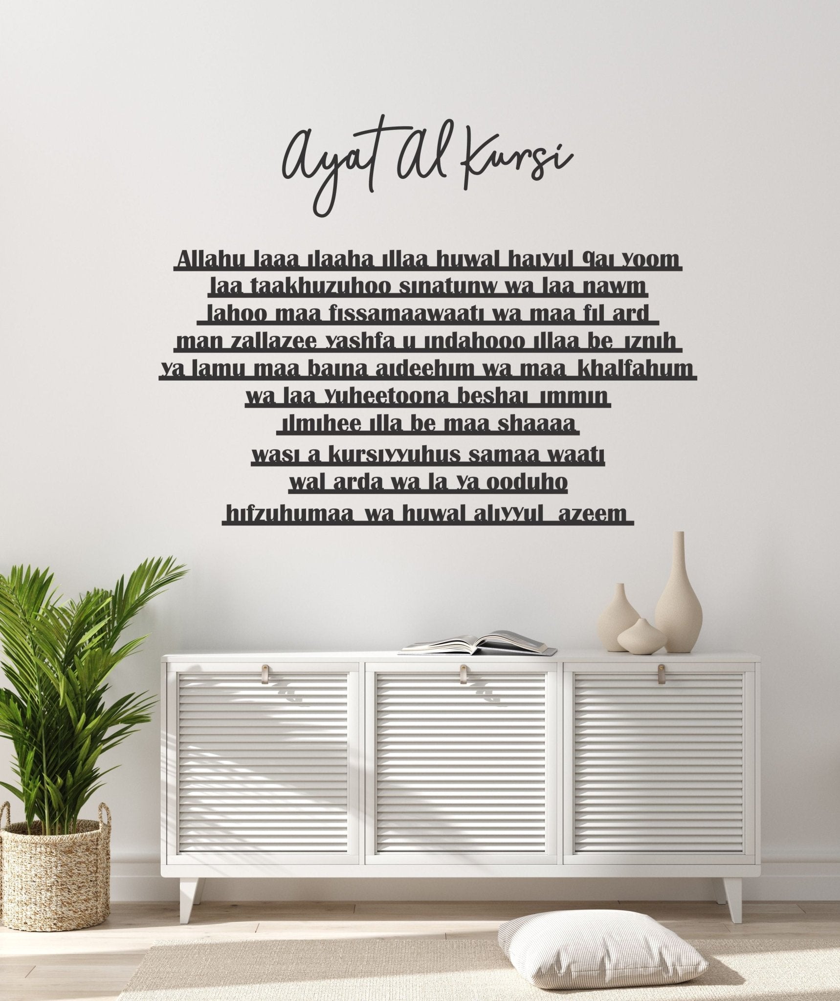 You can choose to have this with the writing at the top saying Ayat Al Kursi or without that and only the transliteration.
