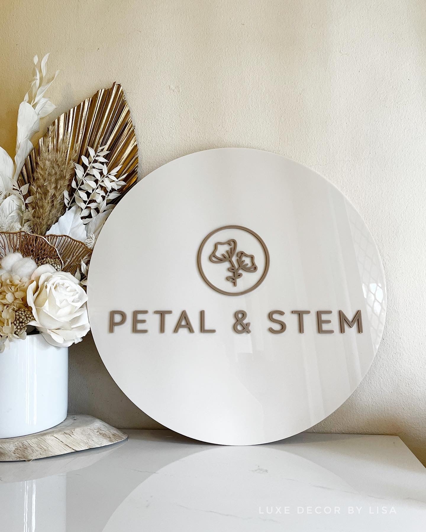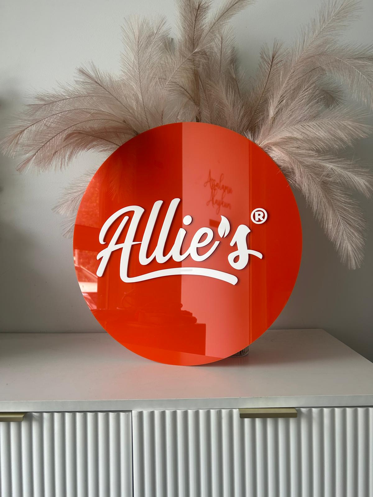 Custom acrylic sign with your business name/logo on it. Choose any colour acrylic circle and colour writing for your logo! Write your colours needed in the design details section