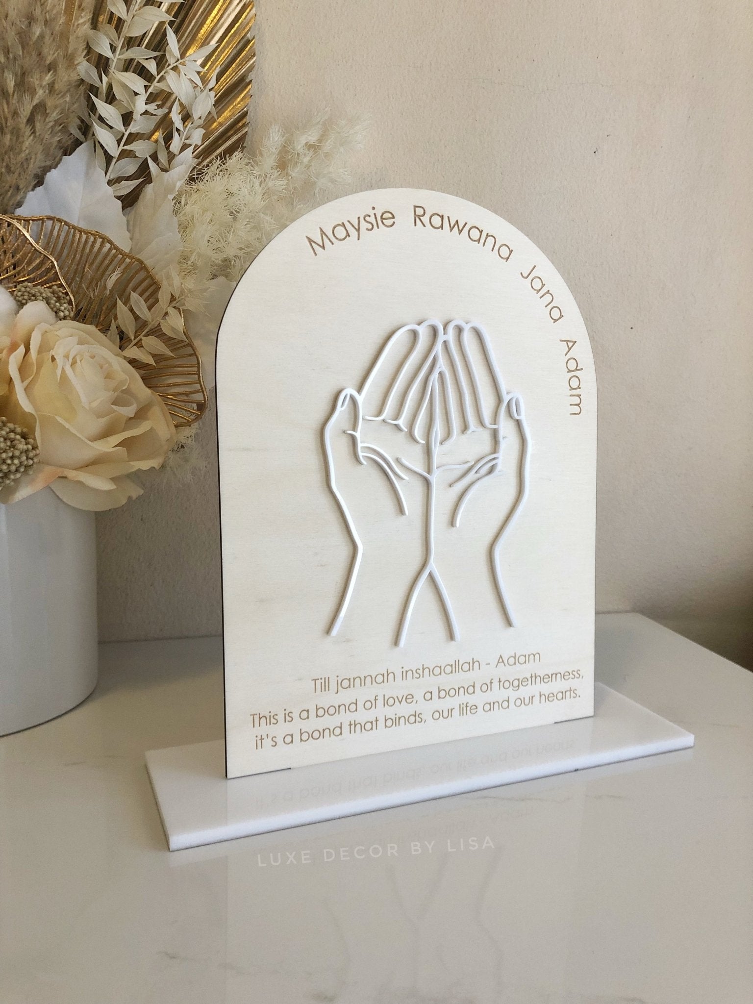 Customise this arched freestanding sign with a few short words/date/name at the top or sibling names. The bottom will have the pictured writing or please let me know if you would like to change the bottom writing also.