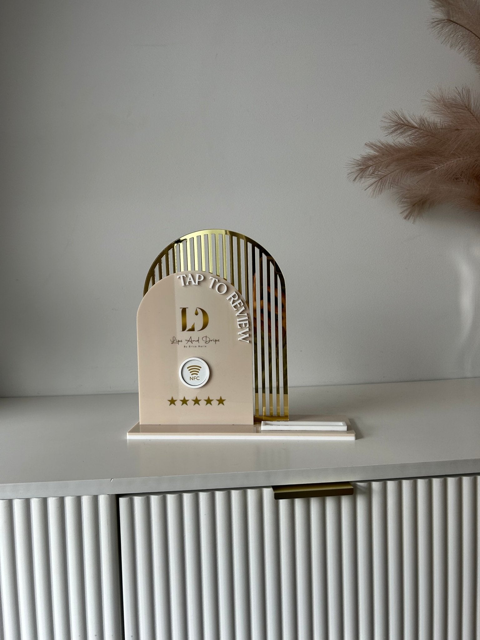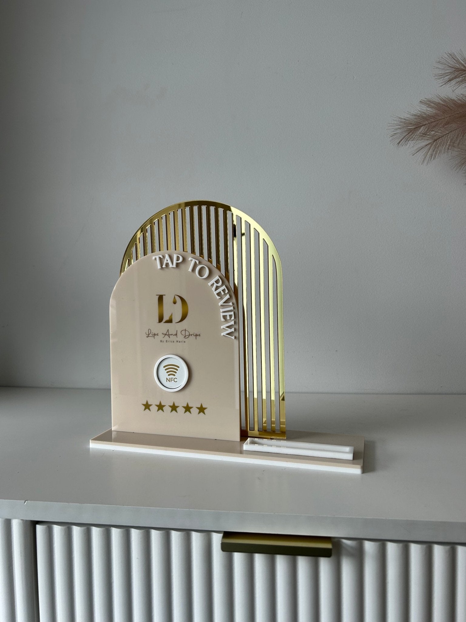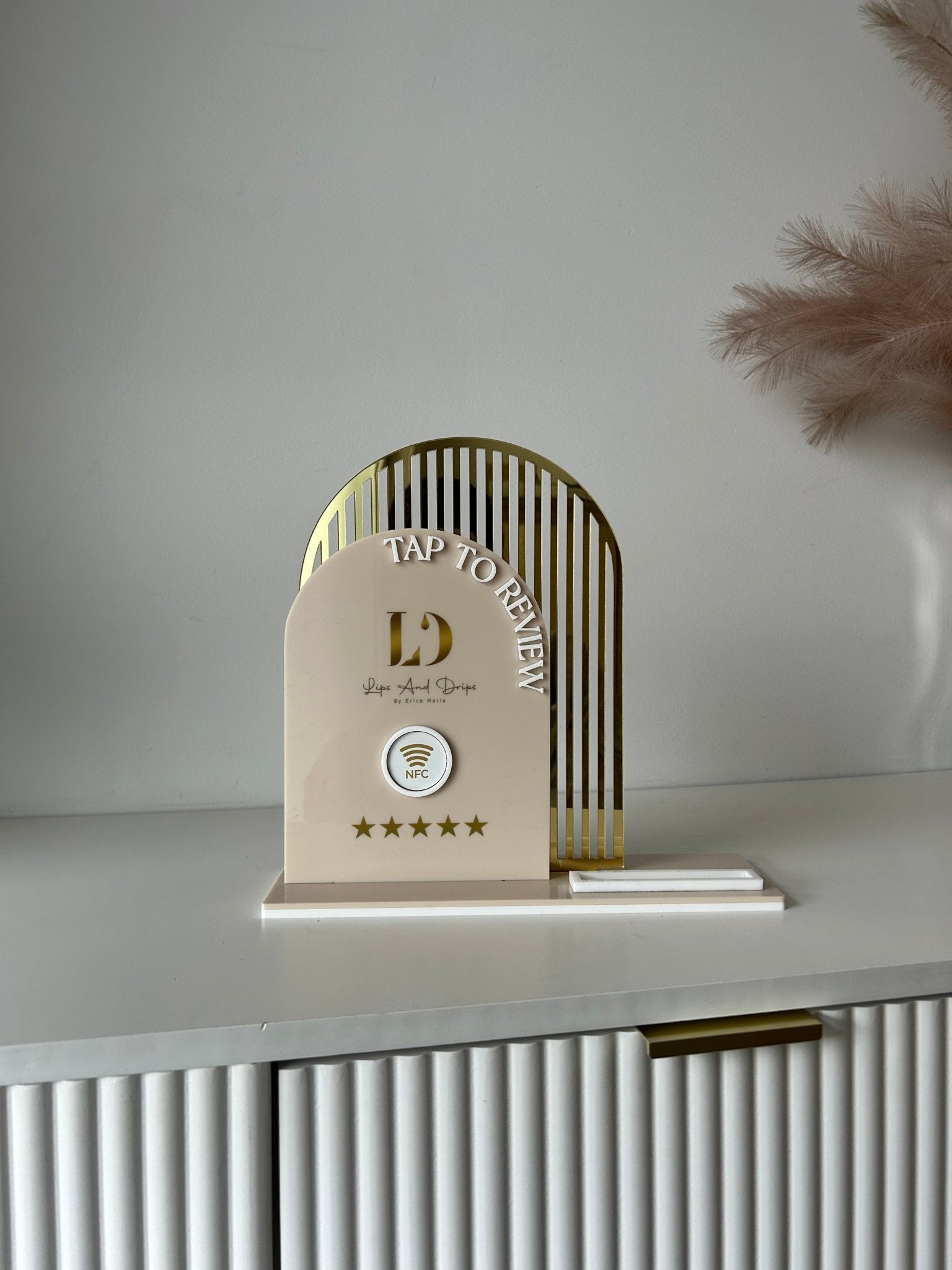 Double Arched Logo + Single NFC and Card Holder - Tap to Review