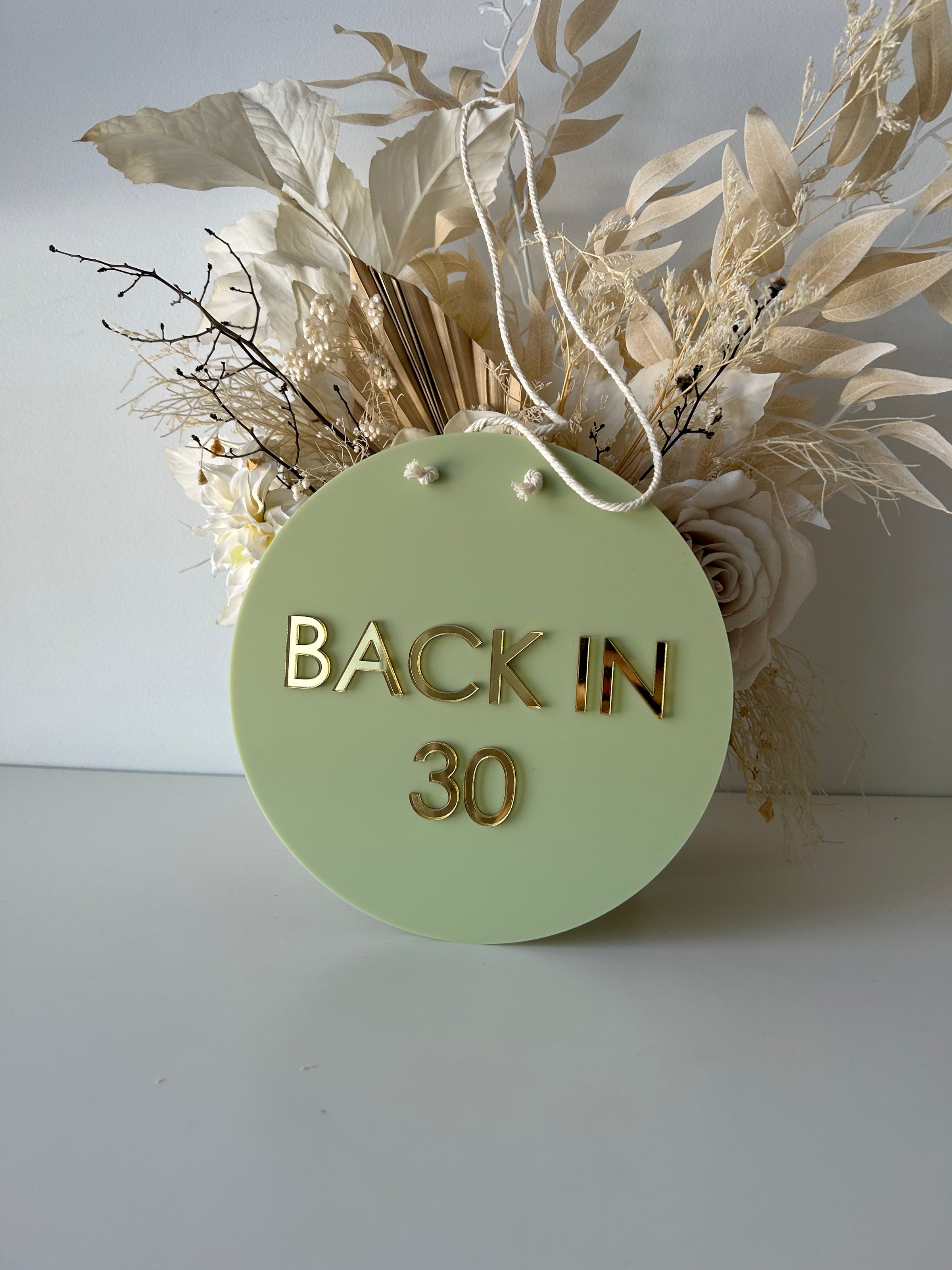 BACK IN 30 and BACK IN 15 - any colour acrylic