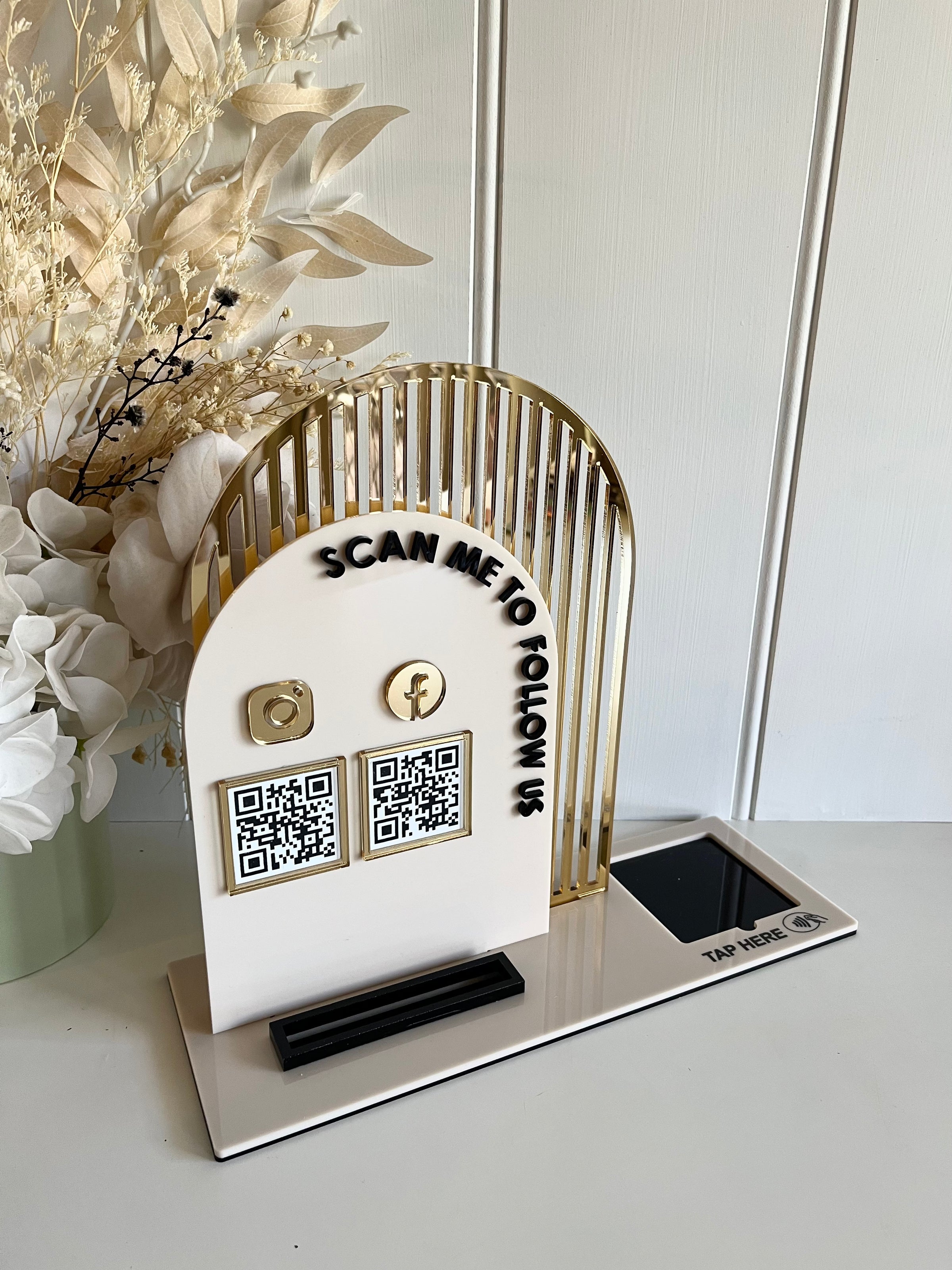3 in 1 Double Arched Social Sign/ Square + QR + Card Holder