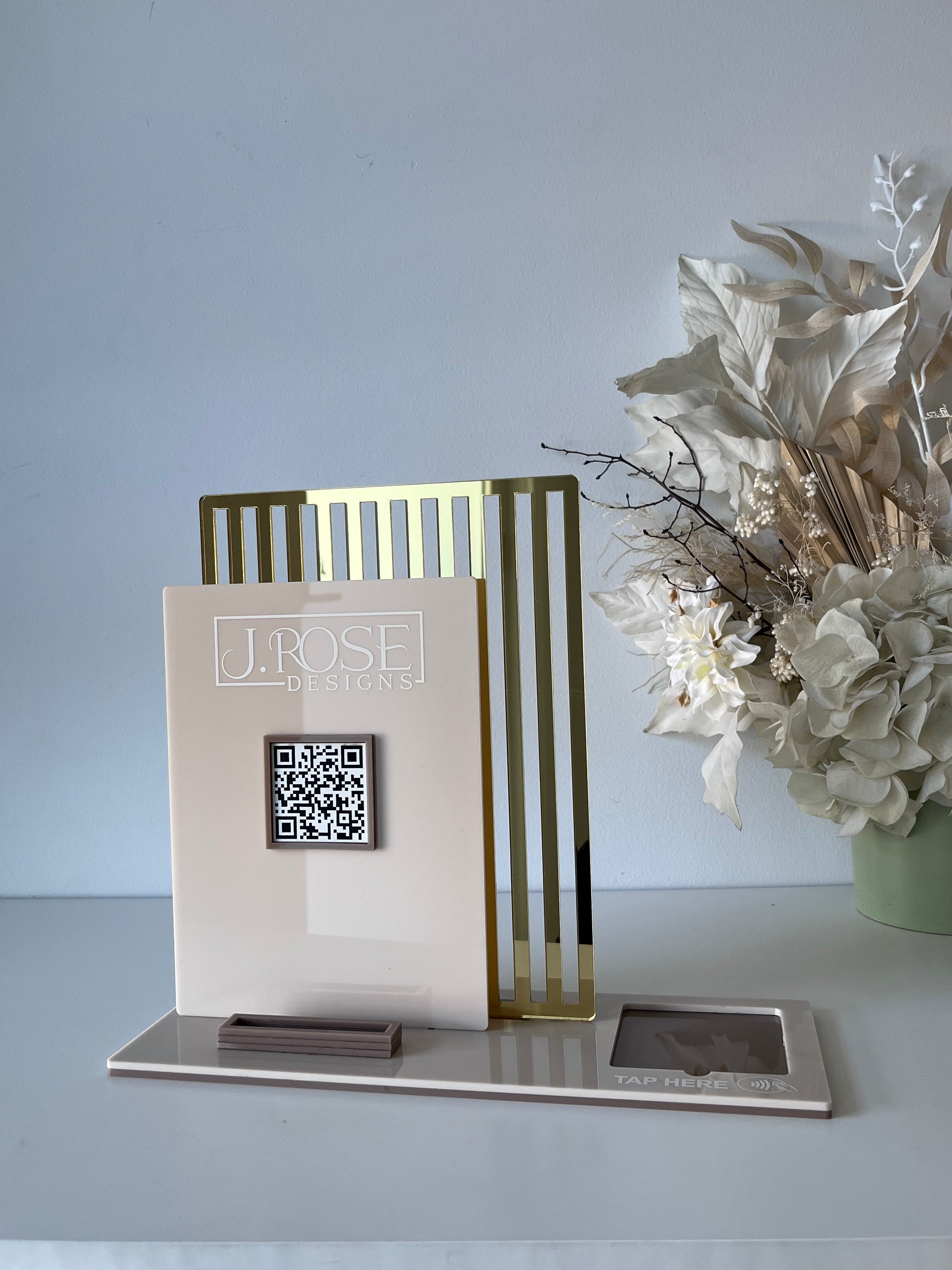 3 in 1 Double Rectangle Social Sign/ Square + QR + Card Holder and Added Logo
