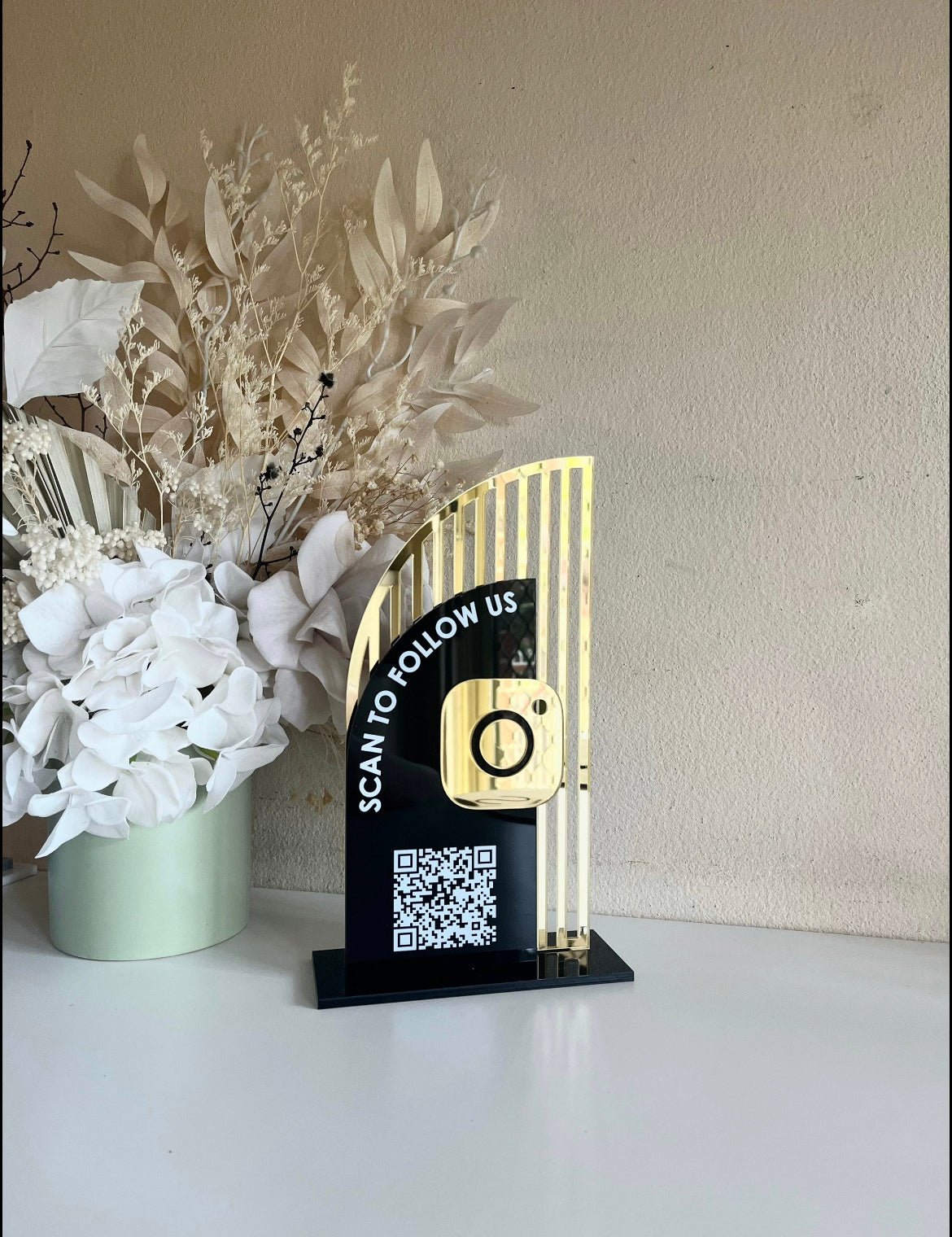 25cm tall x 12.5cm wide freestanding beautiful modern circle QR code sign