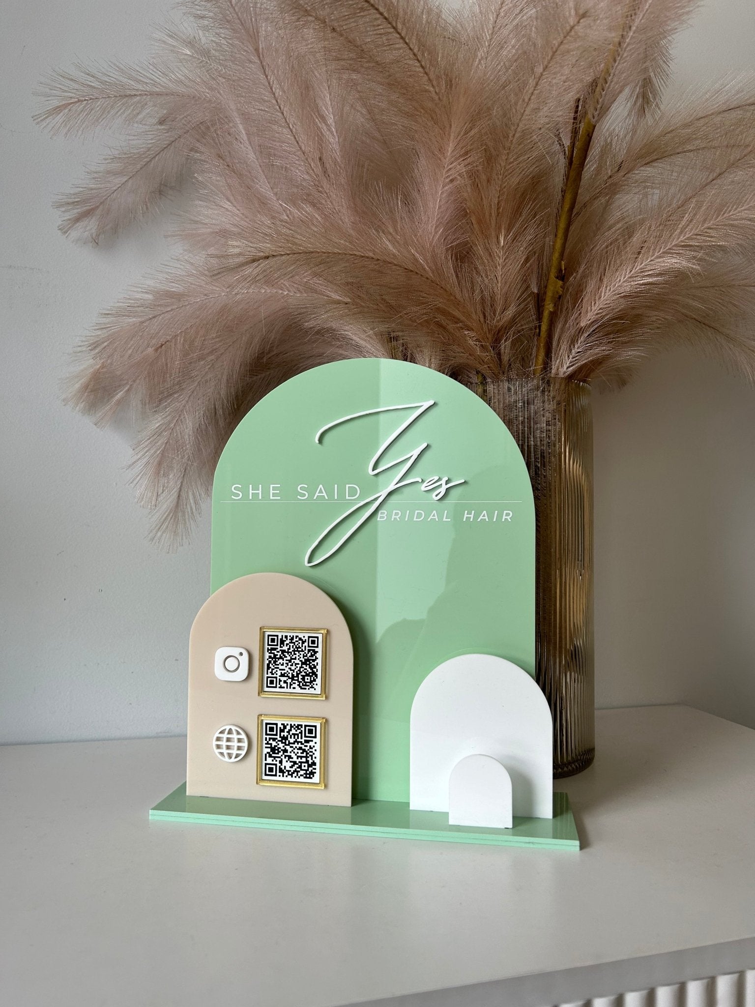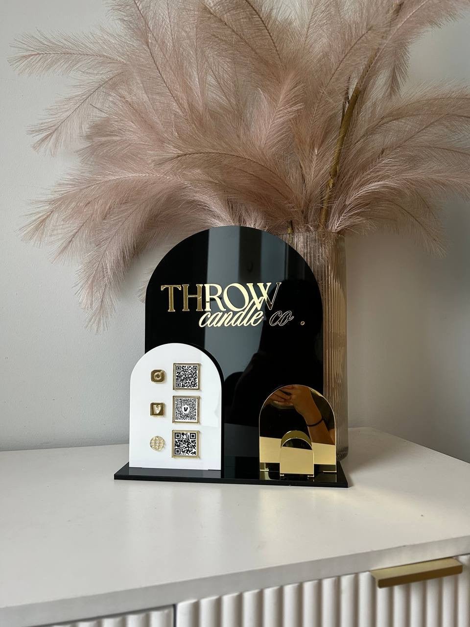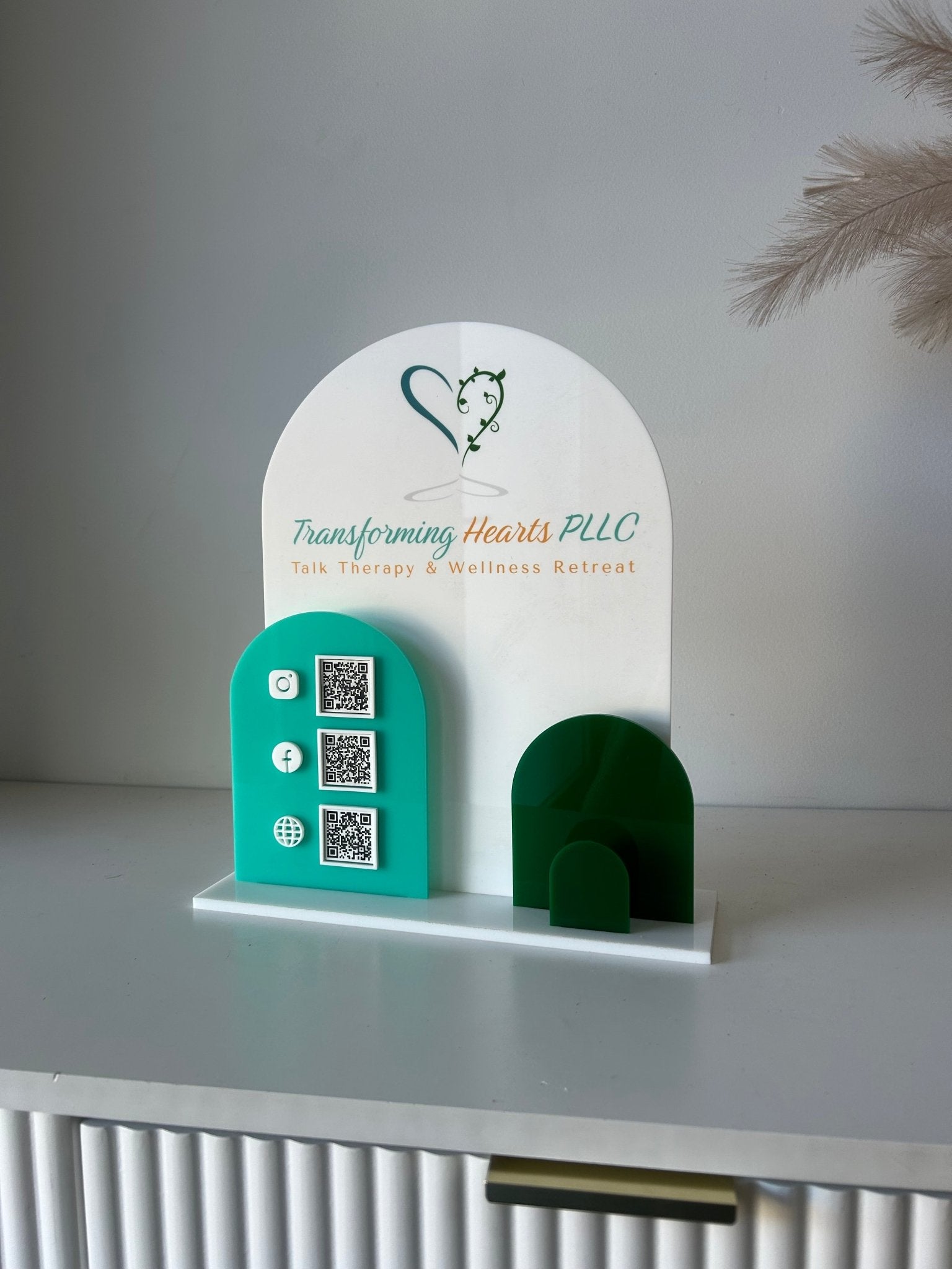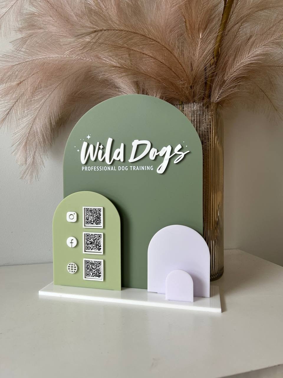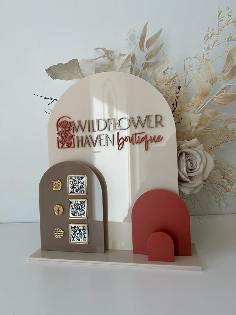 Solid Triple Arches, Logo, QR’s + Card Holder