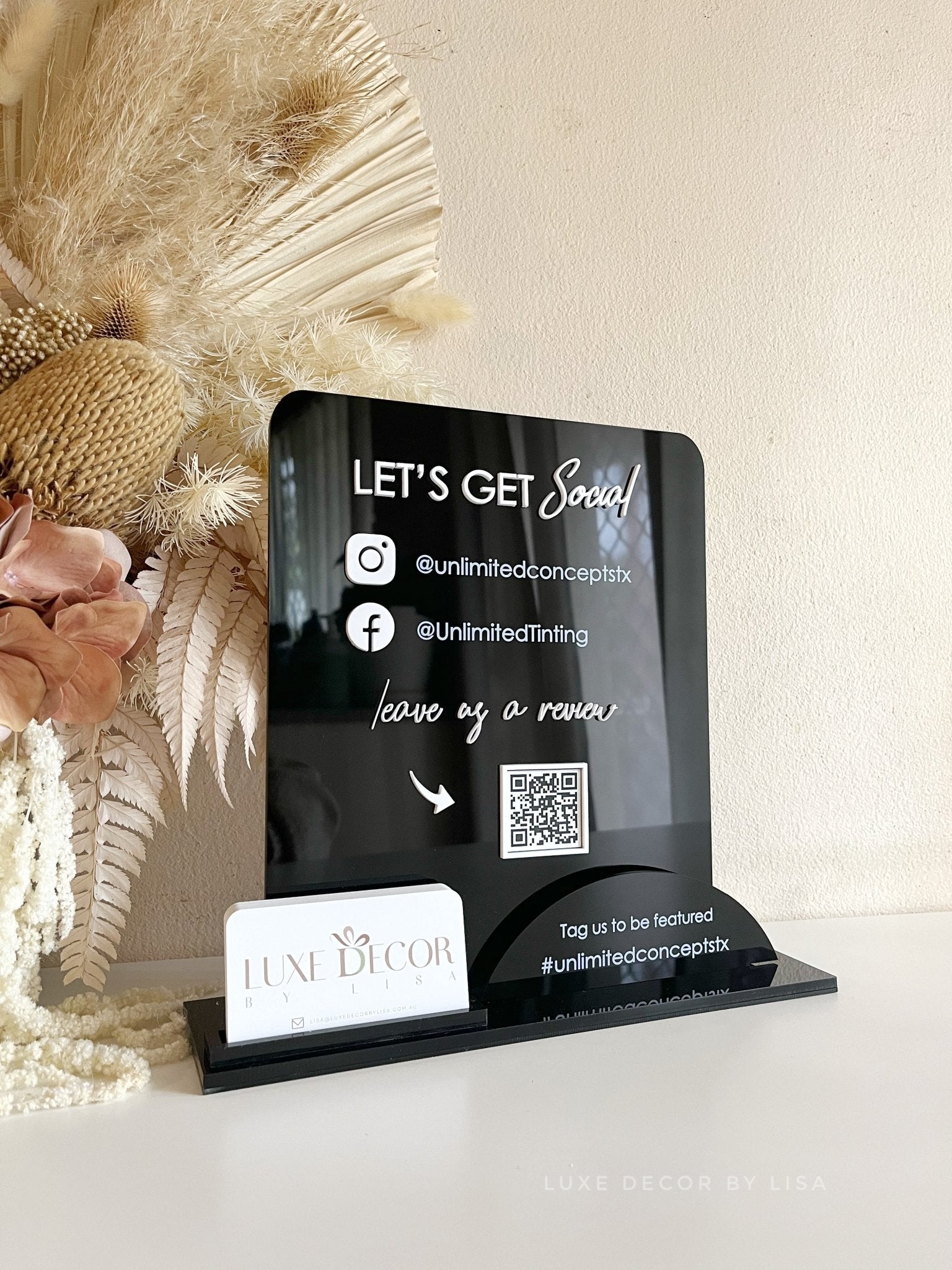 Squared Social Sign + QR Reviews Style 2 with added Card Holder
