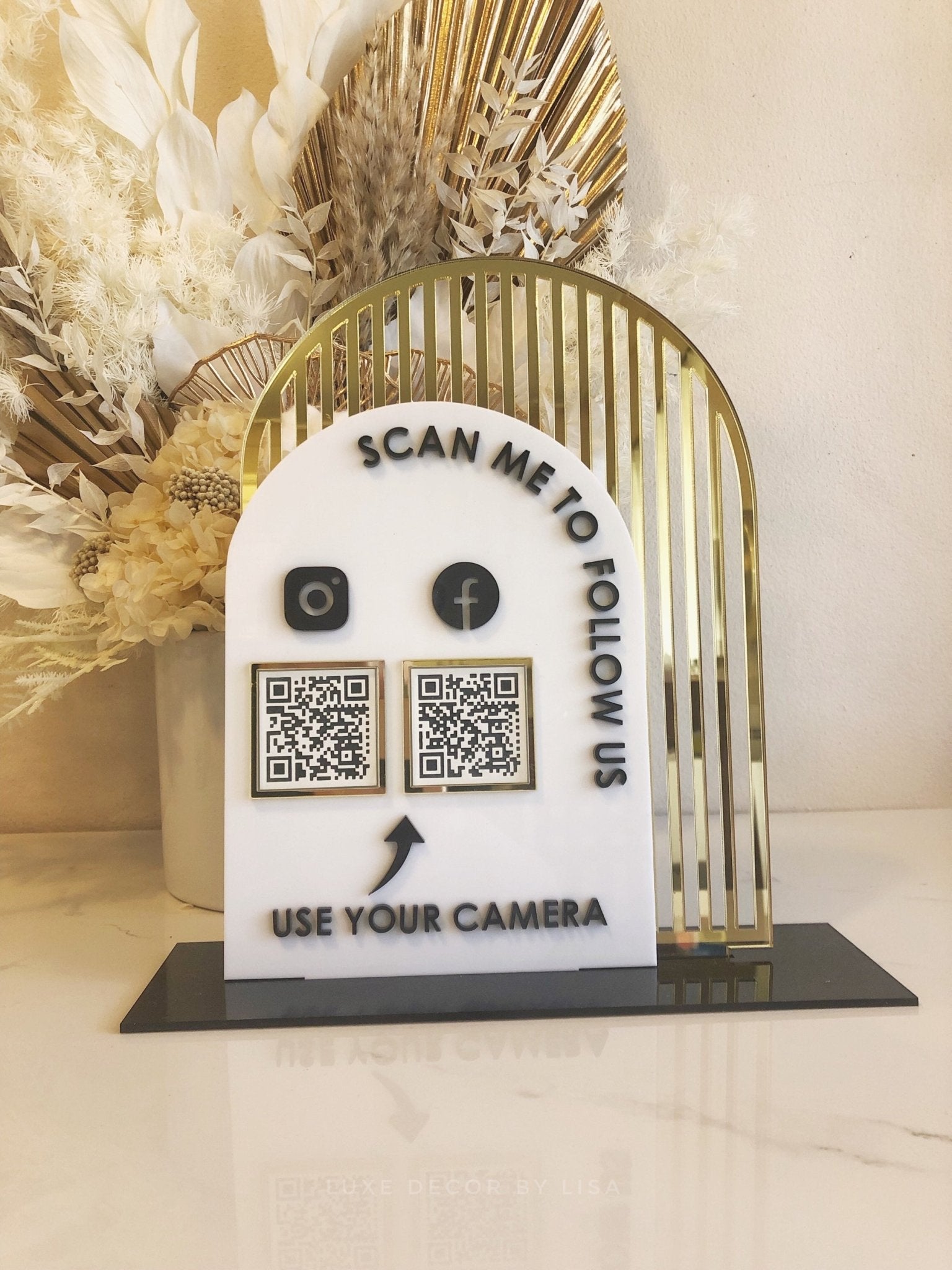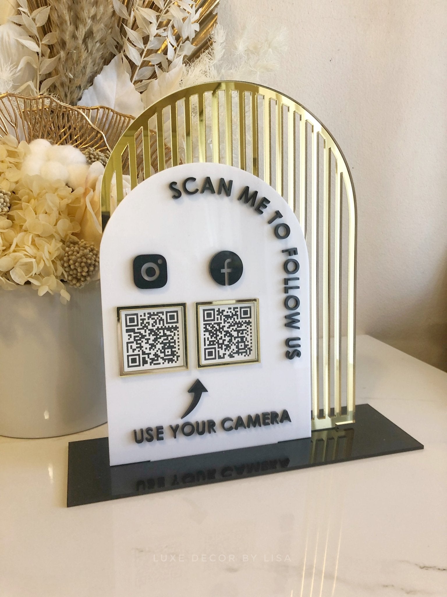 This gorgeous design consists of 3 pieces. The base, the designed back piece and the front arch piece with the QR details on it.