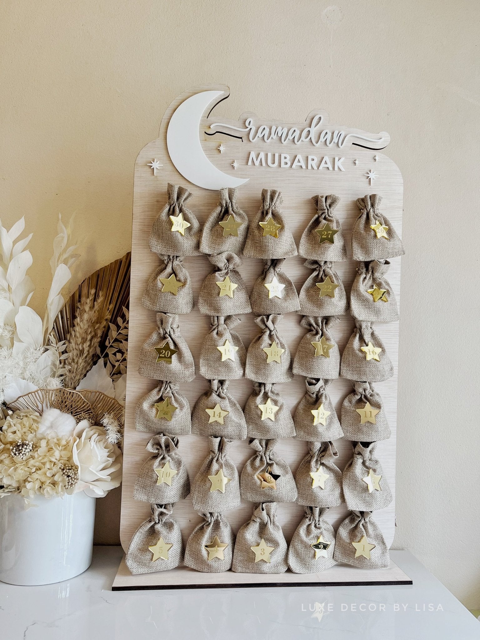 Advent Ramadan Countdown Till Eid Freestanding with Bags - white + gold