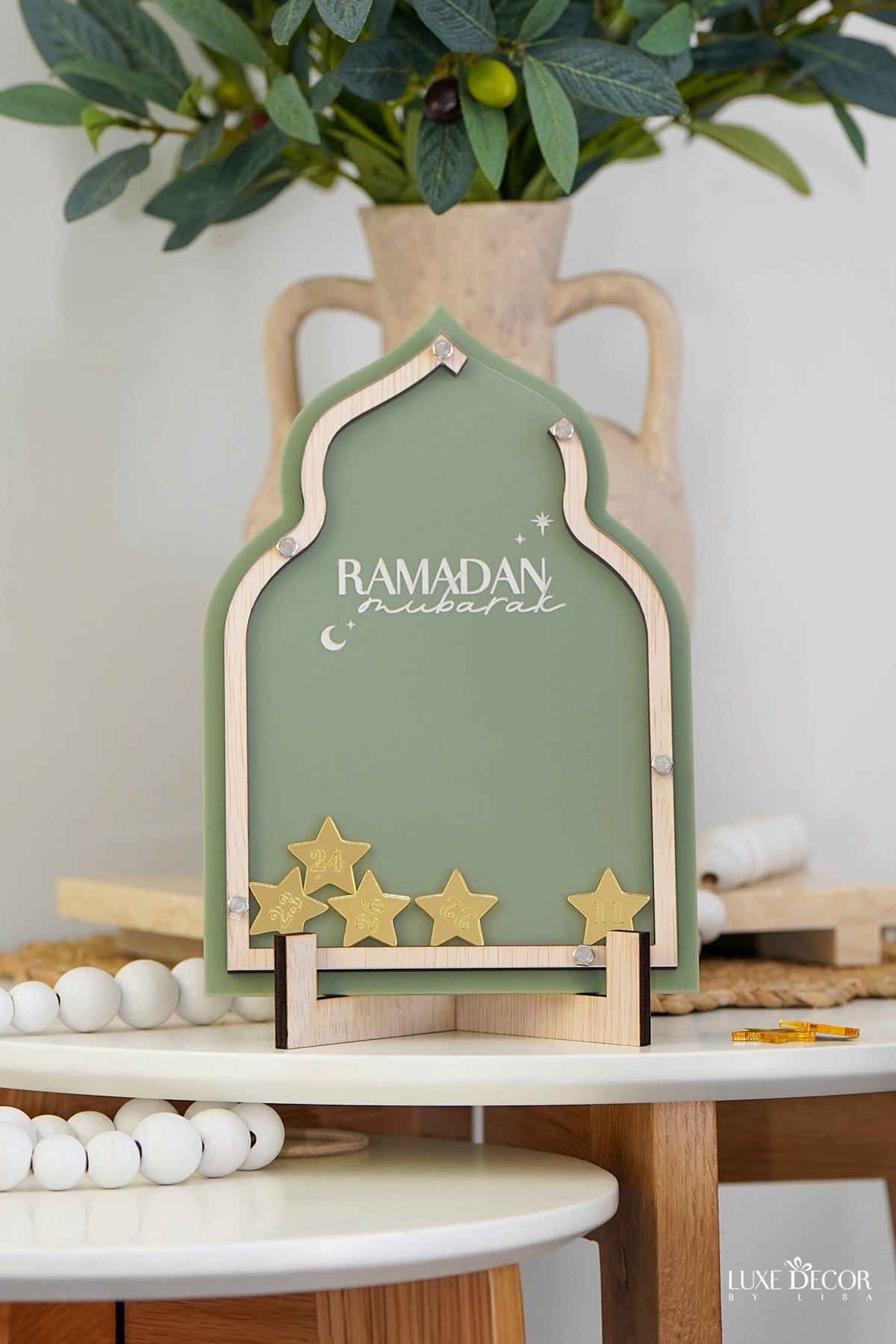 This beautiful design is freestanding and comes with 30 stars numbered 1-30. Insert 1 number each day counting backwards each day of Ramadan InshaaAllah to countdown to Eid.