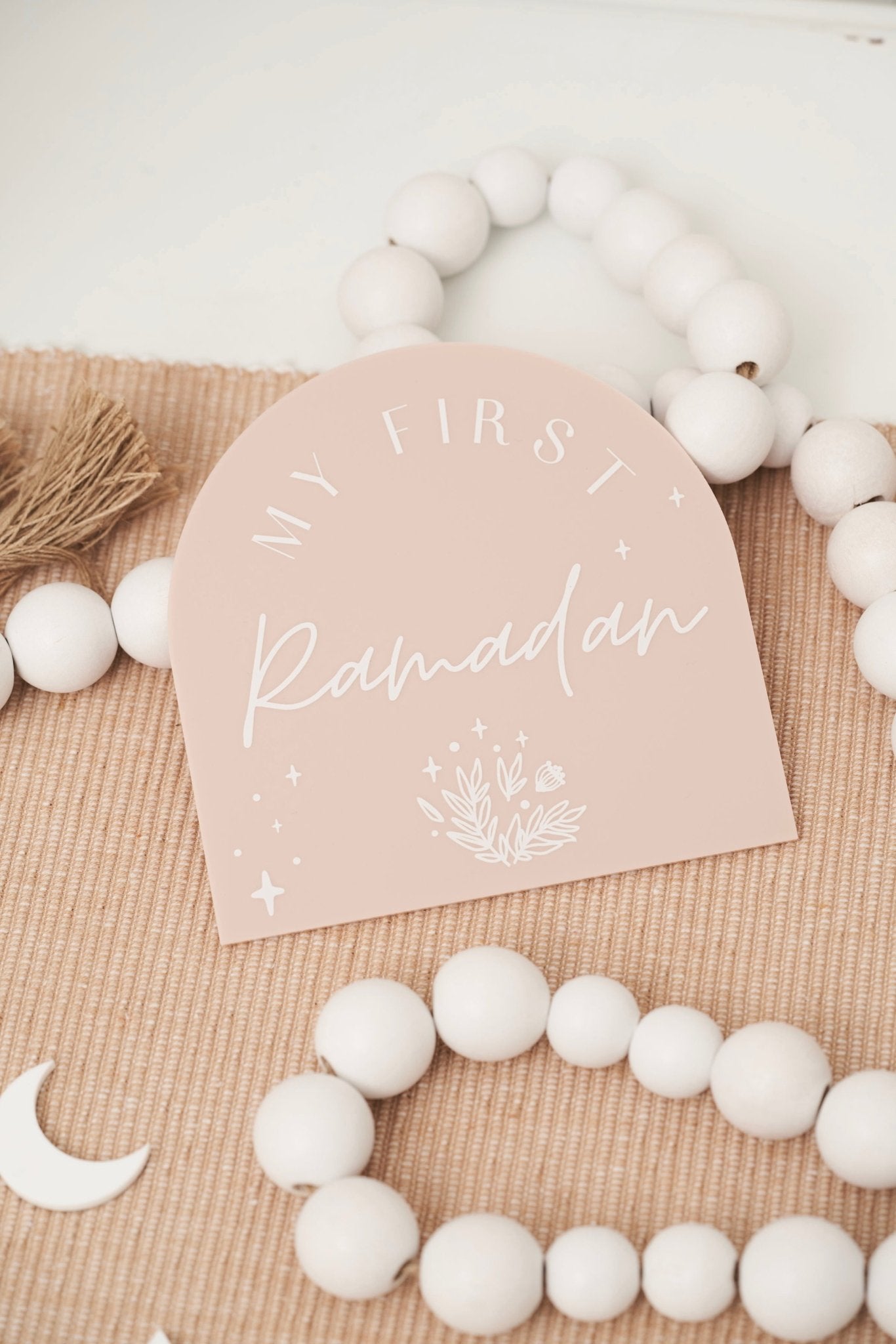 Choose any colour acrylic for the arch and the text can be white or black (or brown if the arch will be beige or white)