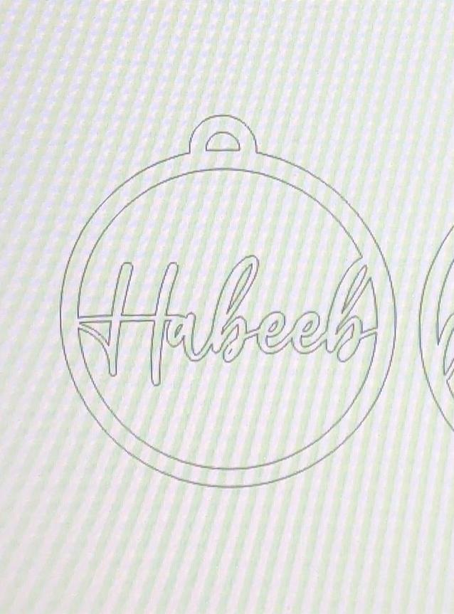 In the shape pictured - approx. 15cm with the name customised. Small hole at the top for string to go through.
