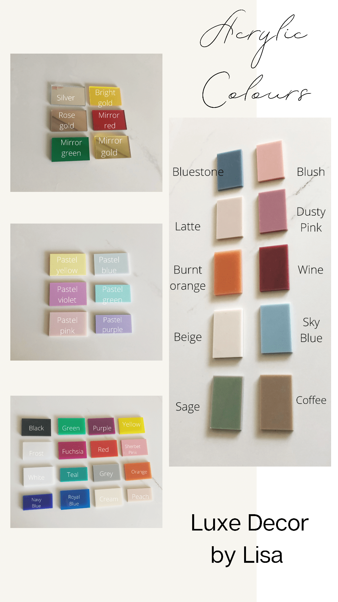 Made in your choice of colour acrylic. 40+ colours to choose from.
