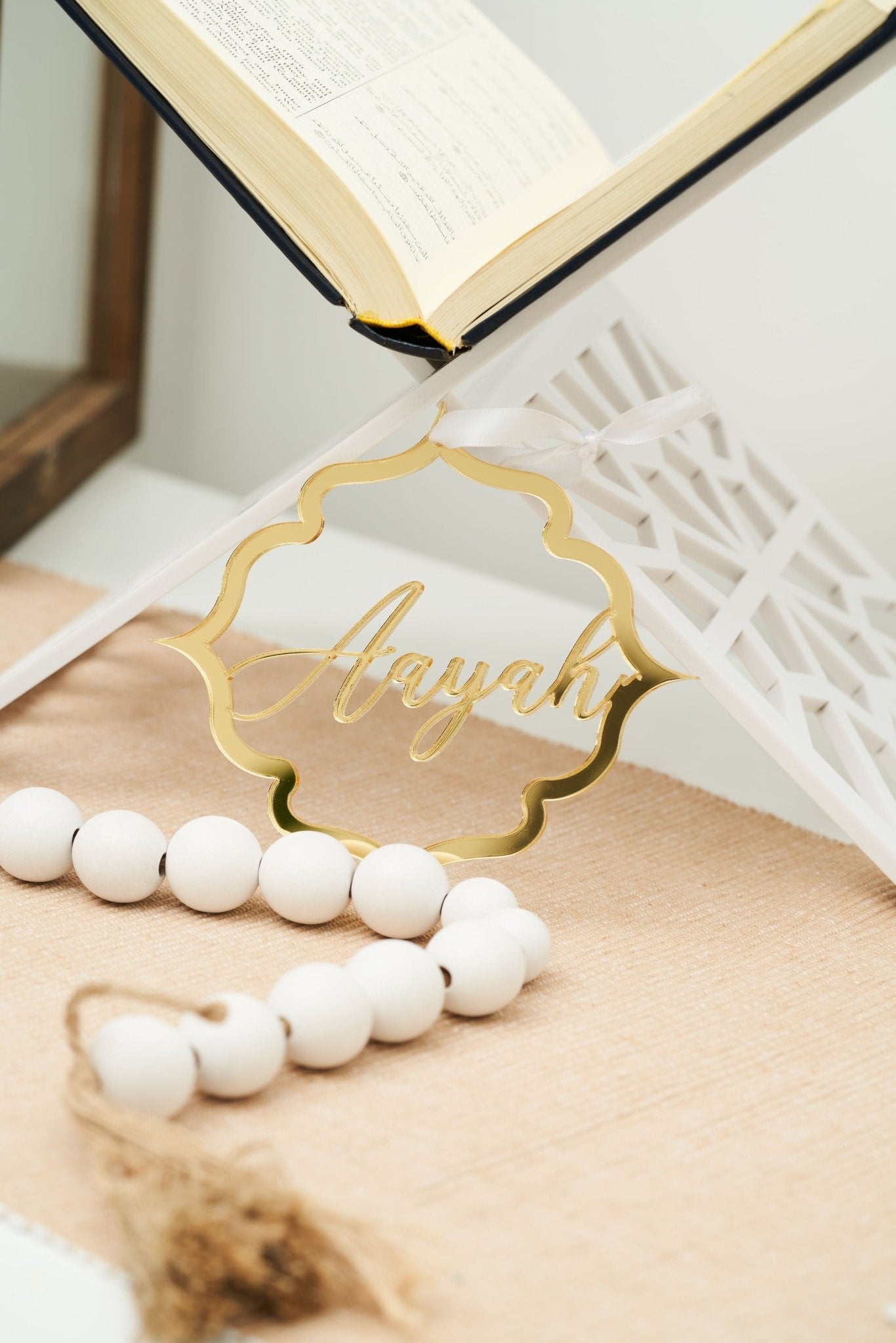 In the shape pictured - approx. 15cm with the name customised. Small hole at the top for string to go through. String is not provided.