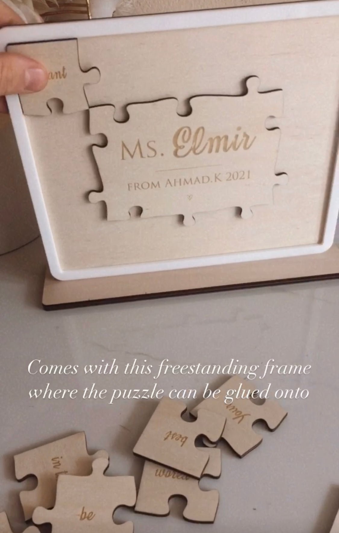 This puzzle comes unassembled. The teacher will need to figure out the hidden message by putting the puzzle together them self. The puzzle pieces can then be stuck onto the wooden frame easily using the double sided tape on the back of each puzzle piece.