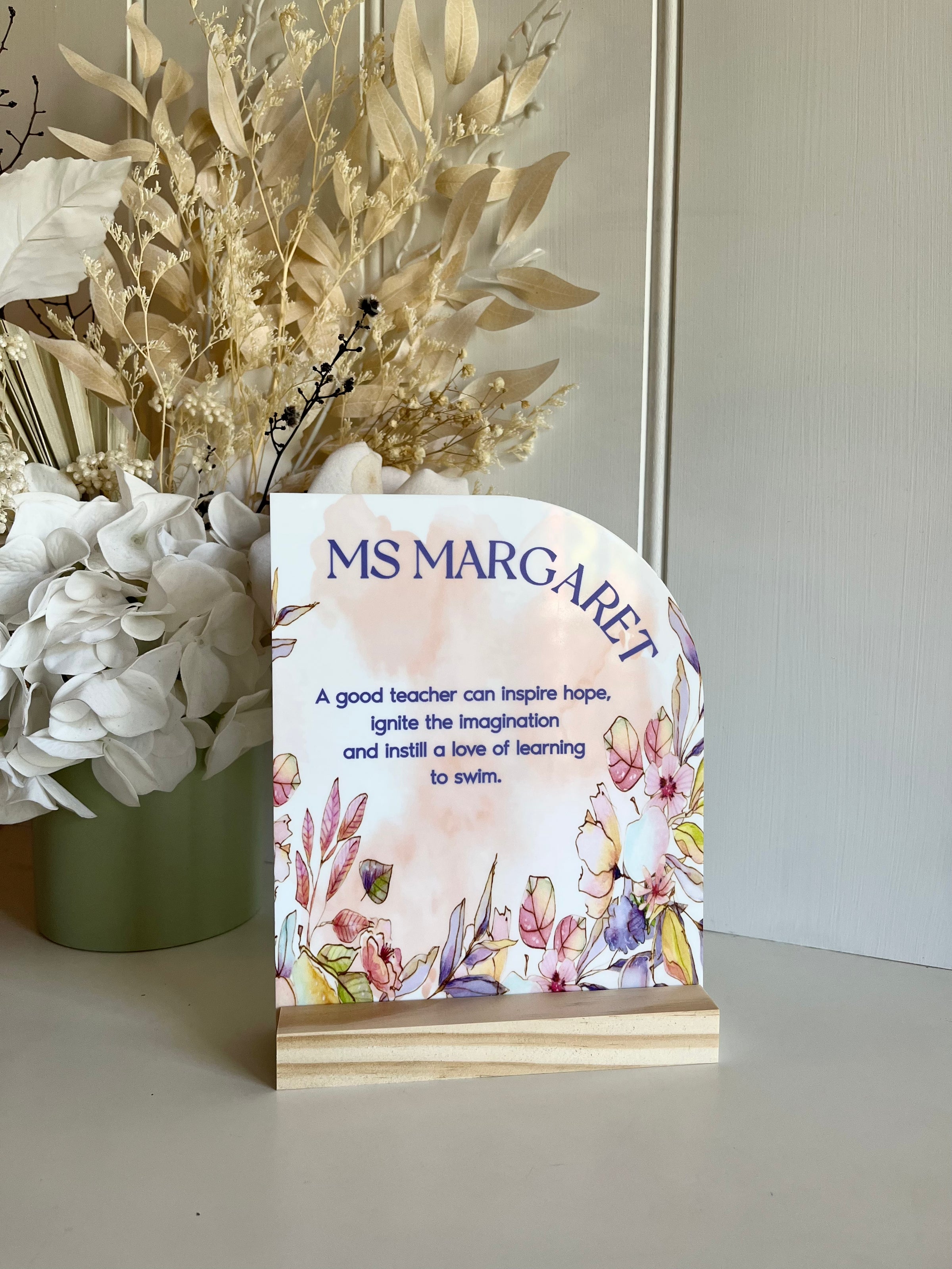 Customise with your teachers name and a short message underneath in the colours/design pictured.
