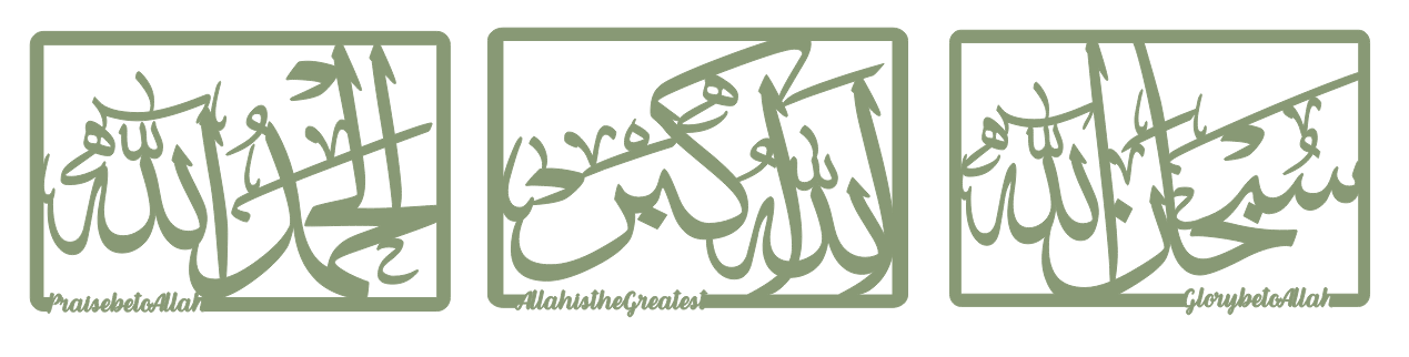 • From right to left: Allahuakbar, SubhanAllah, Al-hamdulillah with english meanings cut out of the border